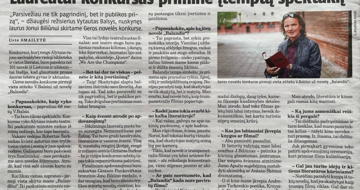 2025-10-02Laureatui konkursas priminė įtemptą spektaklįLietuvos rytas, 2025 m. rugsėjo 26 – spalio 2 d.