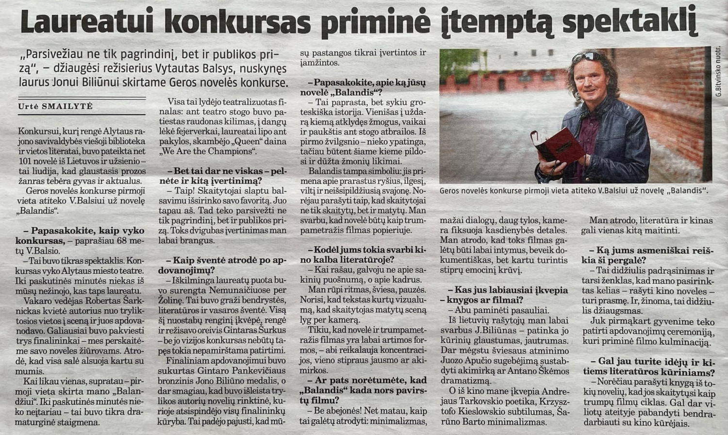 Laureatui konkursas priminė įtemptą spektaklį2025-10-02/in NaujienosLietuvos rytas, 2025 m. rugsėjo 26 – spalio 2 d. https://geranovele.lt/wp-content/uploads/2025/10/LR-straipsnis.jpg 1128 1888 novele https://geranovele.lt/wp-content/uploads/2025/02/gera-novele-logo1-300x110.png novele2025-10-02 14:32:022025-10-23 11:12:43Laureatui konkursas priminė įtemptą spektaklį